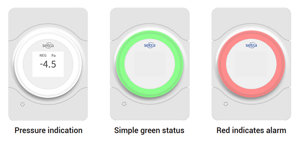 西特更推出革新性负压监测新产品Setra Lite可视化房间微差压监视仪,通过可视化的红绿光环显示,全面了解该区域逐个房间当前的压差状态。这可以大大提高监测准确率,降低巡检时间。