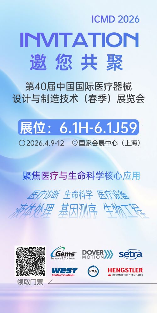 聚焦医疗器械设计、制造及核心部件的专业盛会——第40届ICMD中国国际医疗器械设计与制造技术展览会将于2026年4月9–12日在国家会展中心(上海)举行。